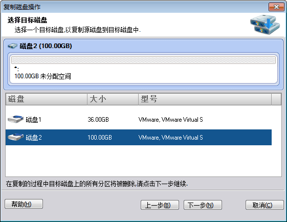 目标磁盘上的所有数据将被源磁盘上的数据覆盖