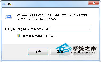 3、完成之后,按下win+r快捷键打开电脑的运行窗口,在运行窗口中输入regsvr32 /s msvcp71.dll并单击回车。