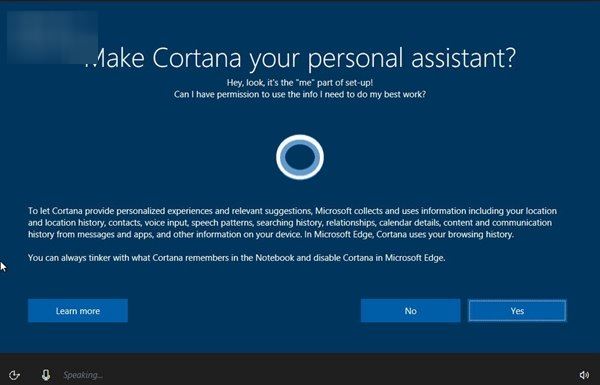 在Win10创造者更新14997泄露的版本中,可以看出微软正努力改善OOBE(Out of box Experience)的体验,在新的OOBE界面,用户需要设置的步骤很简洁,并且可以使用语音命令和Cortana交互,使得安装后的初始配置过程更加快速有效。