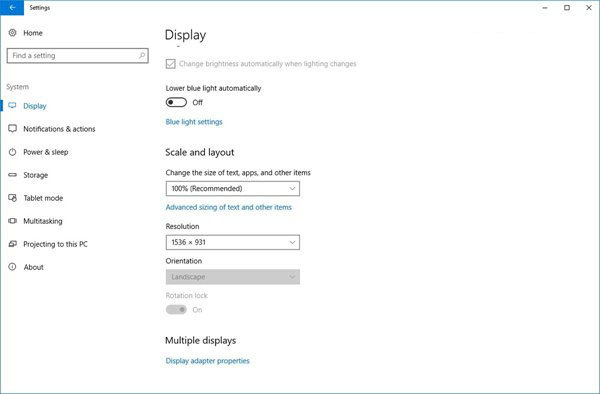 这里还增加了一个“Multiple displays”选项,当前显示为一个指向显示适配器属性的链接,未来,我们可能会看到一些更多的选项。