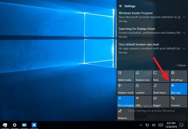 另外,微软还在控制中心中加入了“蓝光”的快捷控制按钮,使用户更轻松地启用和禁用此功能。