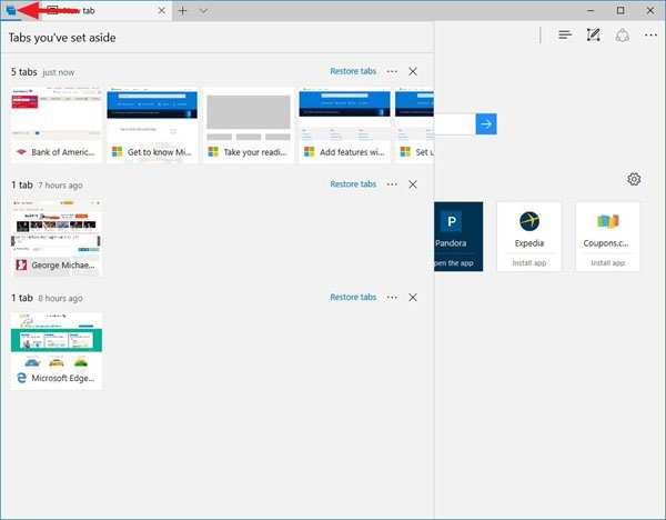 在泄露的Win10创造者更新14997中,微软Edge浏览器版本号跳转到39.14997.1001,它包括一些新的功能和改进。首先,在标签选项卡上,当打开的标签页开始堆叠的时候,用户可以单击第一个打开的标签旁边的“Set these tabs aside”的按钮,以保存标签页以供以后查看。