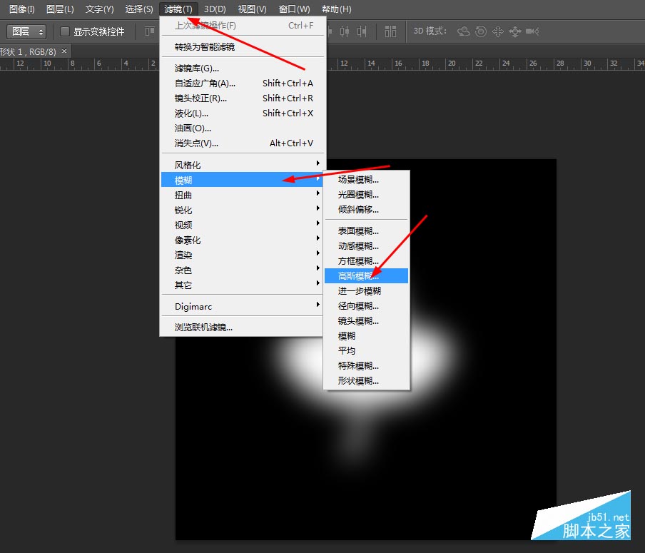 3、先隐藏形状图层副本,然后选择形状图层在滤镜中添加高斯模糊,如图所示