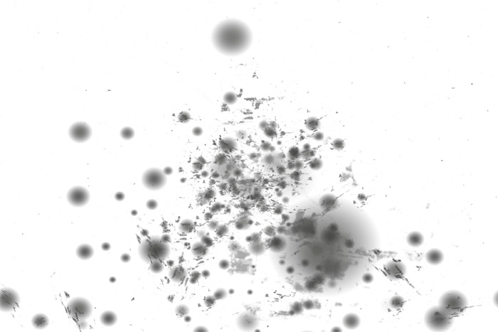 9、在模特图层上面,利用教程提供的爆破笔刷和粒子素材在下图的位置,增加爆破粒子效果。