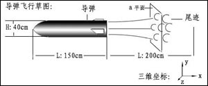 一、确定"导弹尾迹"构成我们不可能有机会观察一个高速运动的导弹,于是,笔者请航空学院的老师画了一张"导弹尾迹"的示意图,见图1。