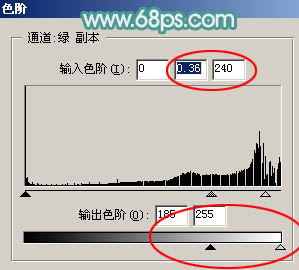 4、按Ctrl + L 调整色阶,参数设置如图5,需要调节输入及输出色阶,效果如图6。这一步把高光稍微调亮,暗部转为灰色。这样图片比较干净。
