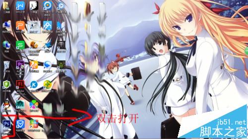 1、双击打开桌面上的ps。