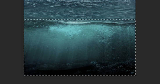 1、创建一个大小为800px * 1140px白色背景。将海洋图片素材拖进Photoshop,用选取工具选择以下区域。