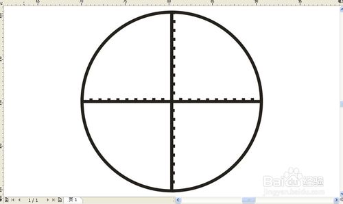 5、画中间的十字,实际是两条直线。我用的是贝塞尔工具画直线,如图点击圆线上的中点。当鼠标指向圆中点的时候会显示节点而不是边缘,这时候就可以用贝塞尔工具画线了。
