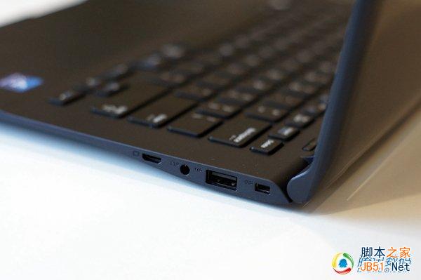 在接口方面,三星ATIV Book 9 Lite虽然轻薄,但是依然为用户提供了相当丰富的接口设计,其中在机身左侧设计有1个USB3.0接口、1个miniHDMI接口、1个mini网口、以及1个SD卡槽,而在机身的右侧位置则设计有1个USB2.0接口、1个音频输入输出一体式接口、1个miniVGA接口以及一个安全锁孔,接口之间的距离尚好,使用上没有什么障碍,使用上较多的mini型接口让人有点不那么方便,毕竟用户希望的是直接使用而不是转接使用。不过考虑到三星ATIV Book 9 Lite机身厚度的限制,这个方面还是可以被理解的。