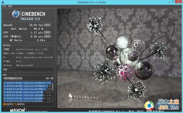 我们使用权威的测试软件CINEBENCH 11.5对三星ATIV Book 9 Lite进行实测。CINEBENCH业内公认的一款基准测试软件,在国内外的主流媒体的多数系统性能测试中都能看到它的身影。它使用该公司针对电影电视行业开发的Cinema 4D特效软件引擎,可以测试CPU和显卡的性能。其中单颗核心和多颗核心的测试是单独计算得分的,除此之外其还提供了OpenGL的测试。这台三星ATIV Book 9 Lite测试机搭载的是“三星专属四核处理器”,实际上笔者不是很喜欢这个称呼,这很容易引起消费者的误判断。在CINEBENCH 11.5的测试中,得到了0.36pts的单核心分数以及1.17pts的多核协作得分,整体表现非常孱弱。