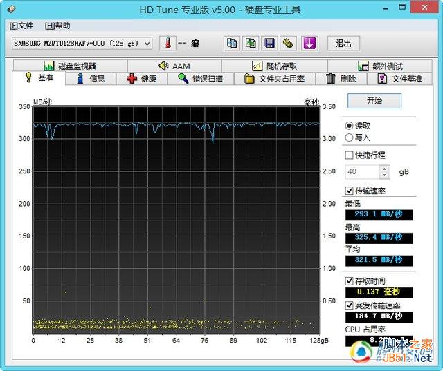 三星ATIV Book 9 Lite在硬盘方面采用的是128GB SSD,整体表现还是不错的,但是相比较市场上的SSD,这款SSD的水平仍然不能说有多么出色,只能说它比主流的机械硬盘强多了。实际测试中,读取速度平均值为321.5MB/s左右,即便不能比市场上的SSD性能更好,但是相比传统的机械硬盘依然优势明显,相信硬盘绝对不会是该机整体的瓶颈所在。