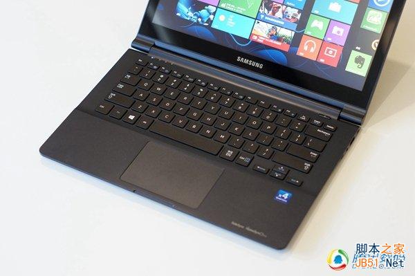 在键盘的设计方面,三星ATIV Book 9 Lite保持了三星轻薄产品的特质,采用黑色键帽设计,与整个C面的墨蓝色搭配起来显得非常和谐。键盘的布局设计也比较合理,用户不会觉得有什么使用方面的障碍。唯独令人感到遗憾的是三星的这款键盘整体的触感一般,由于轻薄本需要节省空间,机身的厚度被一再缩减,显然在键盘方面不能够做的过厚,结果就是键程短,整体触感一般。另外C面键盘以外的掌托和机体部分虽然仅采用工程塑料材质,但是整体的处理显得三星很有经验,给人的感觉是细腻有质感的,不仔细看完全会误以为是金属材料。有一句话说的好,看厂商对产品的设计制造实力就看材质,能把金属做的不像金属,把塑料做的不像塑料的厂商都是大牛厂商,显然三星在ATIV Book 9 Lite这款机器上做到了这一点。