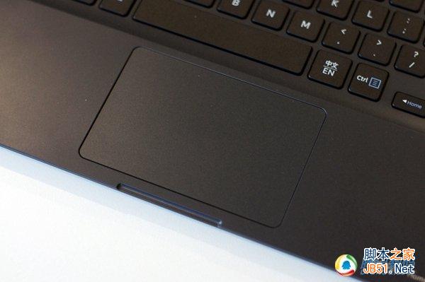 在触控板的设计上,三星ATIV Book 9 Lite采用了一块大面积的一体式触控板,表面采用磨砂工艺处理,虽然在纯光滑表面那种发涩的感觉,流畅度比较不错。在按键的感受上,虽然触控板采用一体式设计,但是整体没有明显的“跷跷板”的感觉,按键的力度和定位感都恰当好处,可以说这个感觉就是所有一体式触控板所应该具有的感觉,体验相当不错。