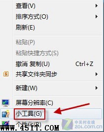 然后点击小工具页面右下角的“联机获取更多小工具”链接,打开“桌面小工具”页面。