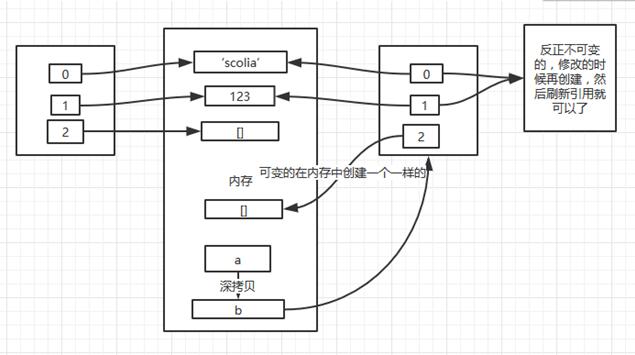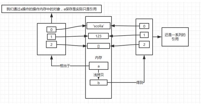 a = ['scolia', 123, [], ] b = a[:] print id(a), id(a[0]), id(a[1]), id(a[2]) print id(b), id(b[0]), id(b[1]), id(b[2])