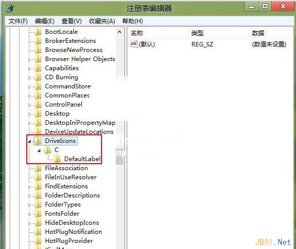 2、 如果没有DriveIcons用户新建一个“项(K)”,命名为“DriveIcons”,再进入DriveIcons新建一个“项(K)”,命名为“C”,然后进入C新建一个“项(K)”,并重新命名为“DefaultLabel”。