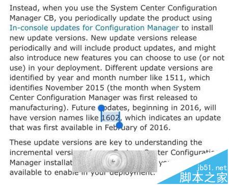 “新版本更新推送将会是周期性的,它将包含产品更新,可能也会为你们带来一些新的功能,而这些功能则将是你在部署系统时可以选择使用(或不使用)的。不同的版本更新将会以像1511这样的年月数字来标示,其中1511暗示的就是2015年11月(这里的月份为系统中心配置管理首次向制造商推送的月份)。未来的更新将开始于2016年,其版本号很可能就是用像1602这样的数字来标示的,这就暗示了该更新会在2016年2月首次推送。”