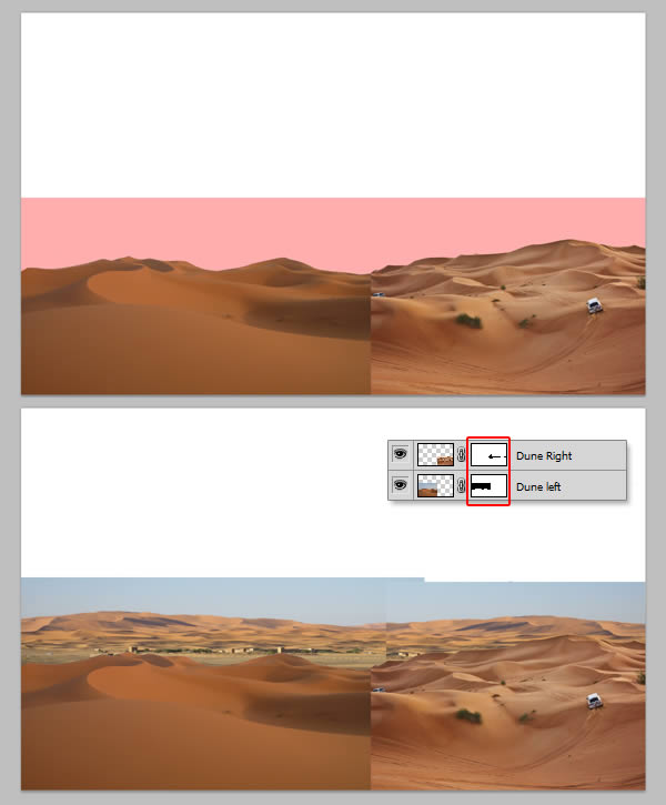 给Dunes Left和Dunes Right两个图层添加蒙版,去掉它们头顶的天空。