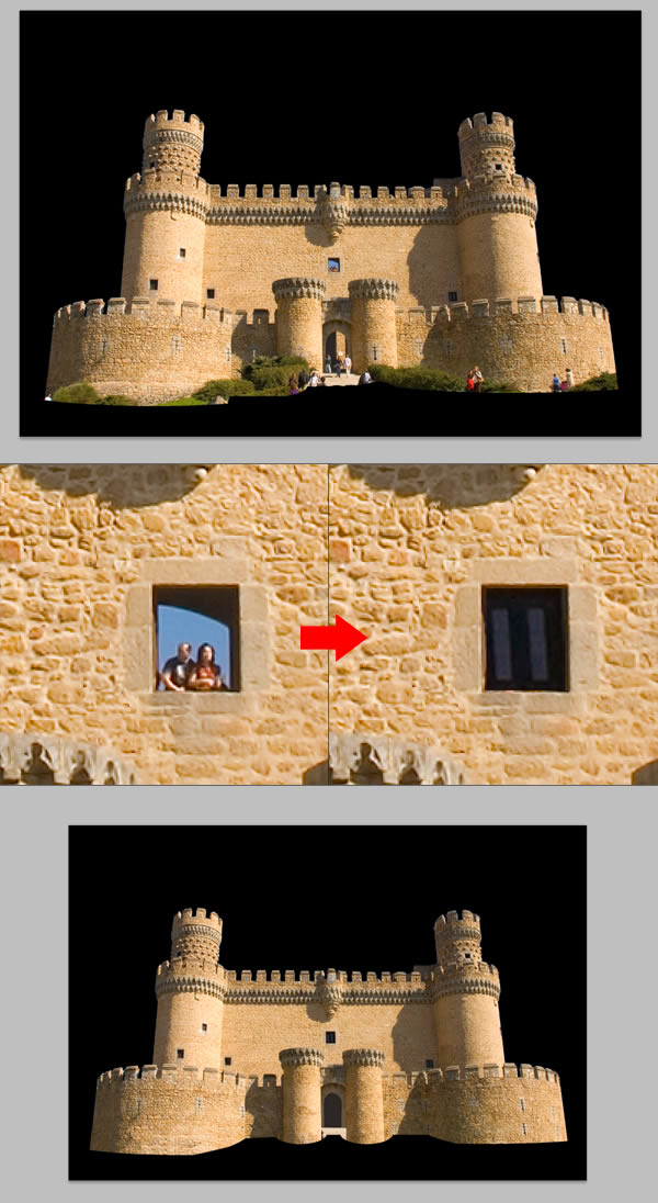 打开Castle,选取没人的那部分,注意窗户,那里有两个人,将这两个小人去掉,然后选取其中的一半,复制粘贴到我们要做的图中。