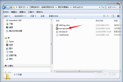 找到引号内内容“amcap.exe”文件,等会而回来复制这个应用程序。