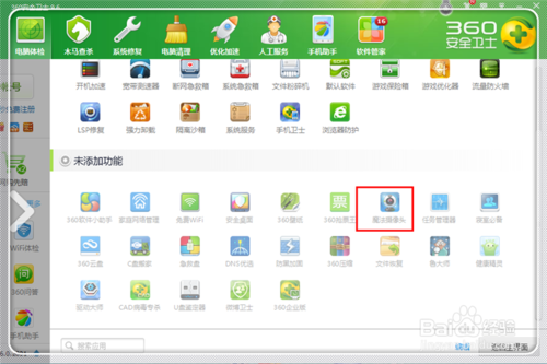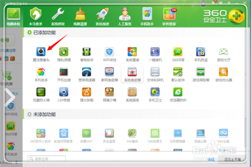 一般来说,大家都没有添加摄像头的,所以,在未添加功能区域中,点击“魔法摄像头”进行添加。