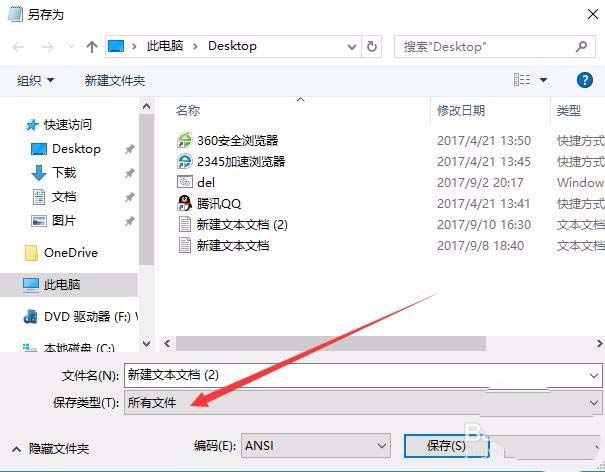 4、在弹出的另存为窗口中,点击保存类型下拉菜单,选择“所有文件”菜单项