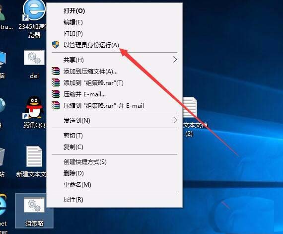 7、右键点击刚刚新建的组策略.cmd文件,在弹出菜单中选择“以管理员身份运行”菜单项,运行文件后关闭命令提示符窗口。