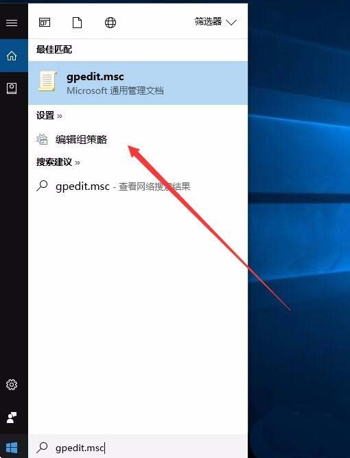8、现在在小娜中输入gpedit.msc,就可以看到专业版才有的组策略编辑器菜单项了。