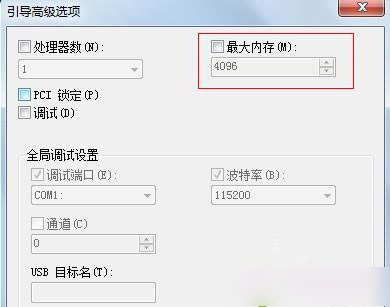 3、在弹出的对话框中取消勾选最大内存,点击确定退出。物理内存显示不正确是因为勾选了最大内存,并且设为0,我们只需要取消勾选即可;