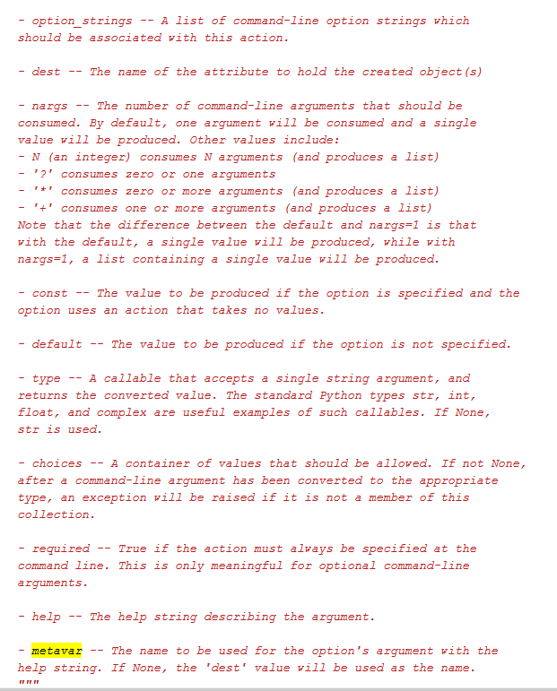 下图就是我们可以跟的参数,自己的问题就是区分清楚action和dest这两个参数,还有default,type等.