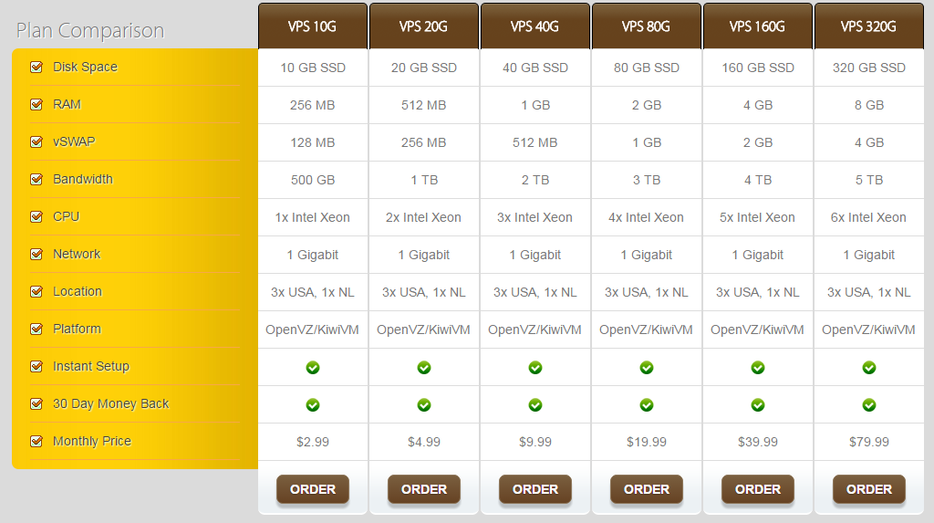 在下面的6个VPS方案中,选择自己需要的内存、流量和硬盘方案,且需要点击直达链接才可以购买,因为这样新注册/登录账户的时候无需输入验证码信息。