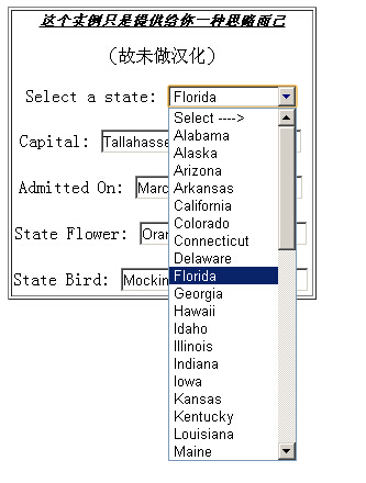 <p>Select a state: <select name=statesList size=1 onChange="showInfo()">