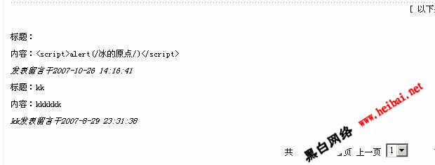 <li>标题:<script>alert(/冰的原点/)</script></li><li>内容: