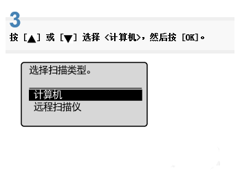 4、通过操作打印机的操作面板让打印机显示“扫描模式屏幕”:(具体操作请严格按照图示操作)