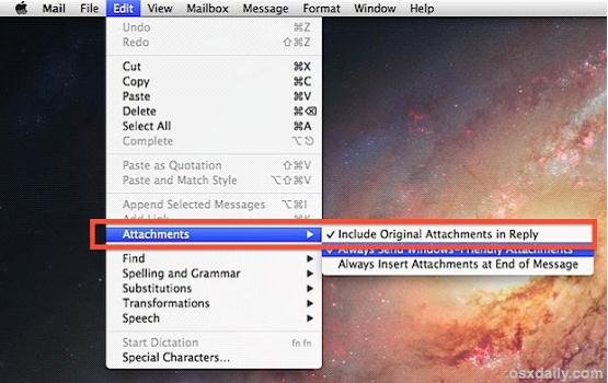 以上就是冷酷口红最近收集整理的关于Mac OS X如何在回复邮件时包含附件不让其消失的全部内容,更多相关Mac内容请搜索靠谱客的其他文章。