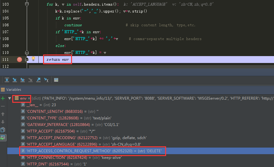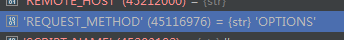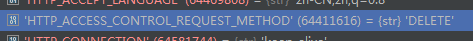 我们找到request的environ变量,可以看到用ajax提交时,比平常提交多了'HTTP_ACCESS_CONTROL_REQUEST_METHOD' (64411616) = {str}'DELETE' 参数