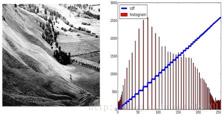考虑一个图像,其像素值仅限制在特定的值范围内。例如,更明亮的图像将使所有像素都限制在高值中。但是一个好的图像会有来自图像的所有区域的像素。所以你需要把这个直方图拉伸到两端(如下图所给出的),这就是直方图均衡的作用(用简单的话说)。这通常会改善图像的对比度。