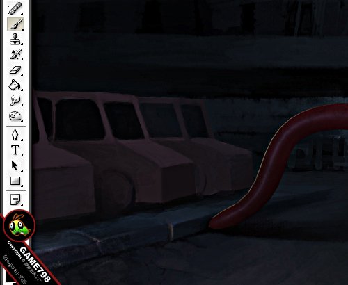 8. 下面是背景的绘制。先铺大色调,然后逐步深入。