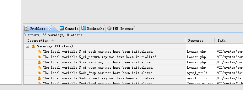 Description Resource Path Location Type The local variable $_ci_path may not have been initialized Loader.php /CI/system/core line 752 PHP Problem