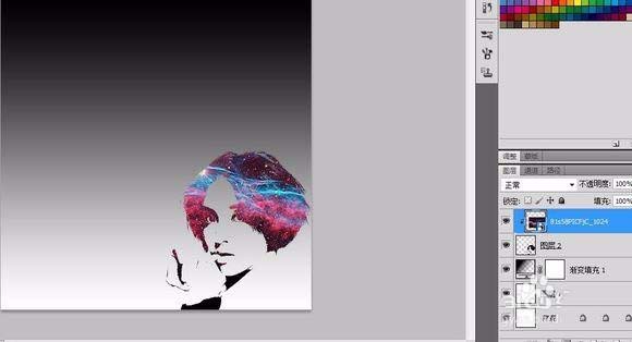 11、把鼠标放在星空和女神图层中间点 ALT 或者右键星空图层创建剪贴蒙板