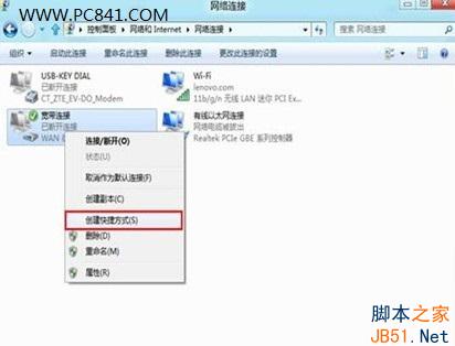选择创建Win8宽带连接快捷方式