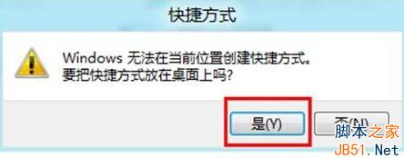 最后我们会看到有提示,我们选择“是”把Win8快捷方式放置在桌面上,如下图:
