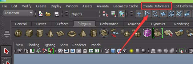 6、选择这个变形的圆柱体在上面找到创建变形器菜单,如图所示: