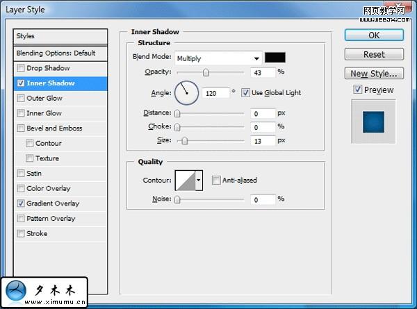 6.按ctrl+E复制这个图层,然后移动其中的一个图层为2-4px.再添加这个图层额名的两个样式.