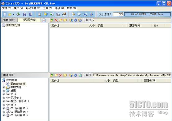制作iso镜像光盘,我们需要用一个有引导文件的空光盘,可是我们怎样才有这样的空光盘呢?~~~用Ultra !我们打开Ultra,放入一张具有引导文件的光盘(如win2003)。把里面的内容一个不留地删了。