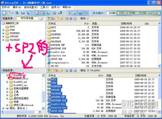 2、把集成了sp2的win2003做成iso镜像光盘。