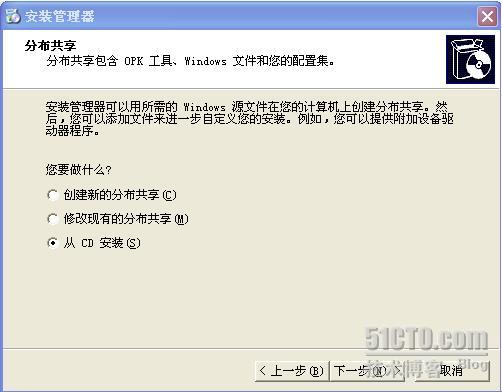 由于我们最后是要把这里的所有文件刻录成系统光盘的,所以从CD安装