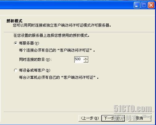 接下来,设置授权模式,选每服务器模式,注意,需要按照实际情况自定义链接数目,这不能理解成用户个数,因为每个用户可能打开多个链接