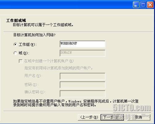 因为不确定光盘用于域内安装,所以暂时用工作组模式就行